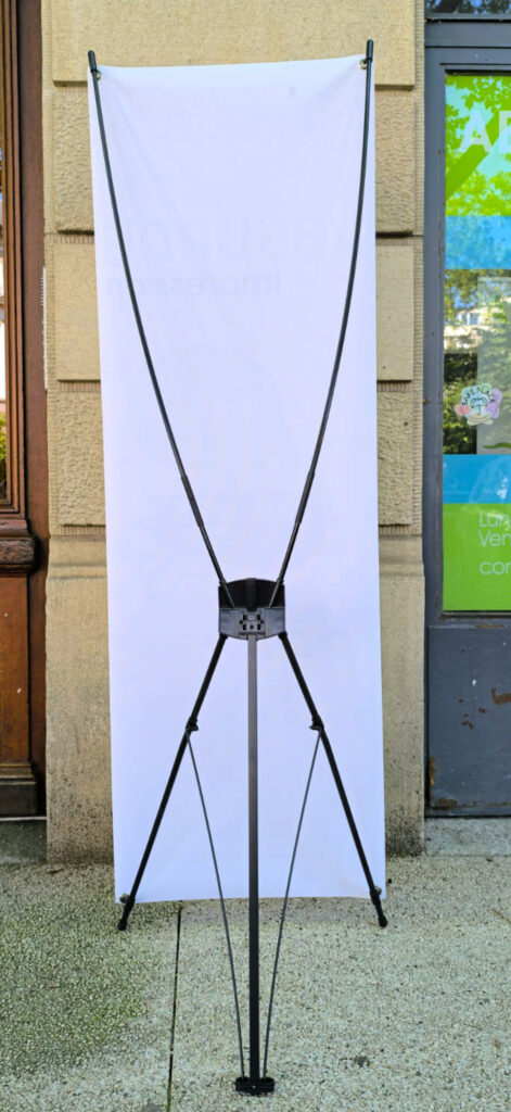 Les Xbannières sont une alternative aux rollups. Ce produit est plus léger à transporter qu’un roll-up.